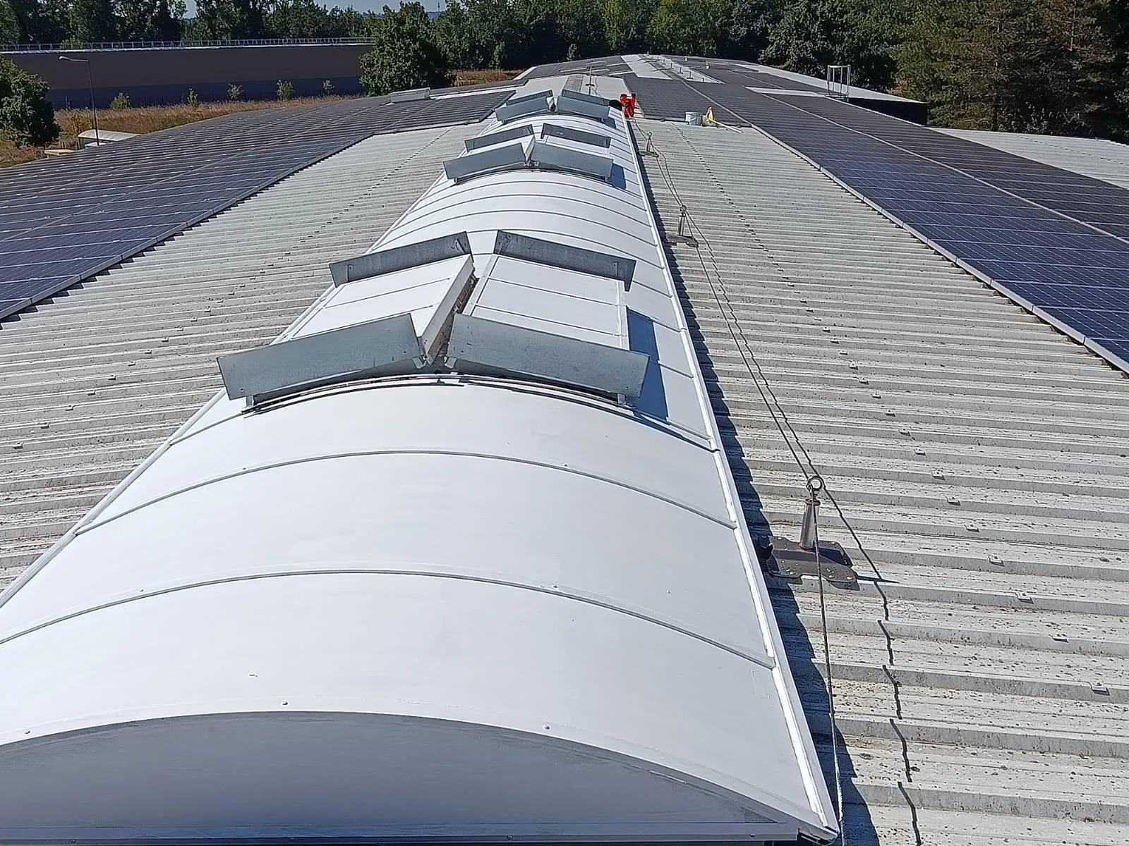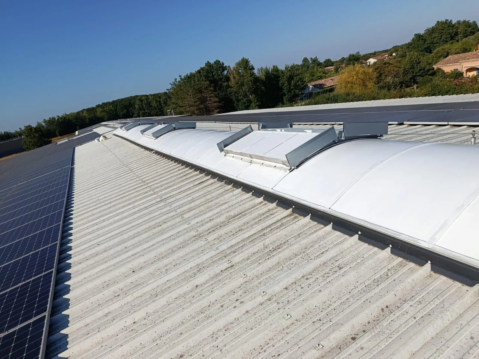 Cette technologie, plus fiable qu’un film solaire sur ce type de support, assure une durabilité accrue, une maintenance réduite et une performance thermique constante, parfaitement adaptée aux toitures d’entrepôts, ateliers et bâtiments associatifs de la région.